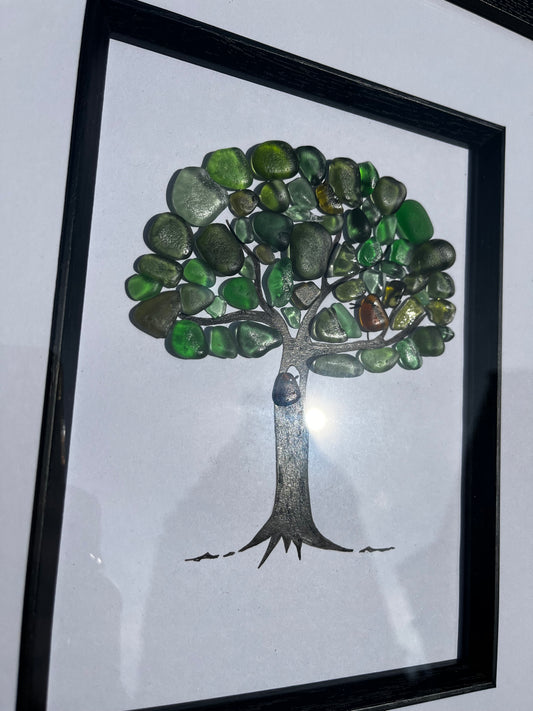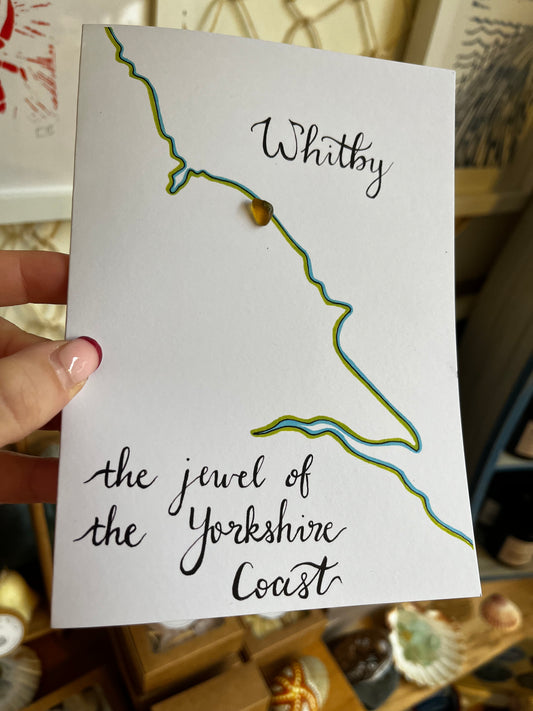 Whitby Sea Glass pendant with matching ring on gold-plated (Olive)