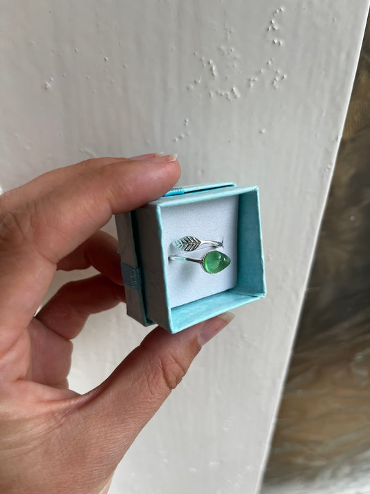 Whitby Sea Glass Silver Adjustable Ring (Green)