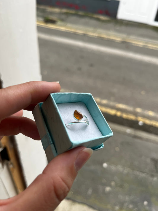 Whitby Sea Glass Silver Adjustable Ring (Ginger/Brown)