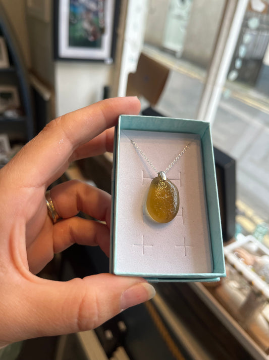 Whitby Sea Glass Pendant on Silver Chain (Honey Yellow)