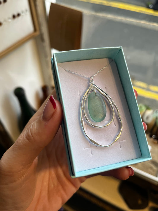 Whitby Sea Glass silver adjustable ring (small green) *made to order