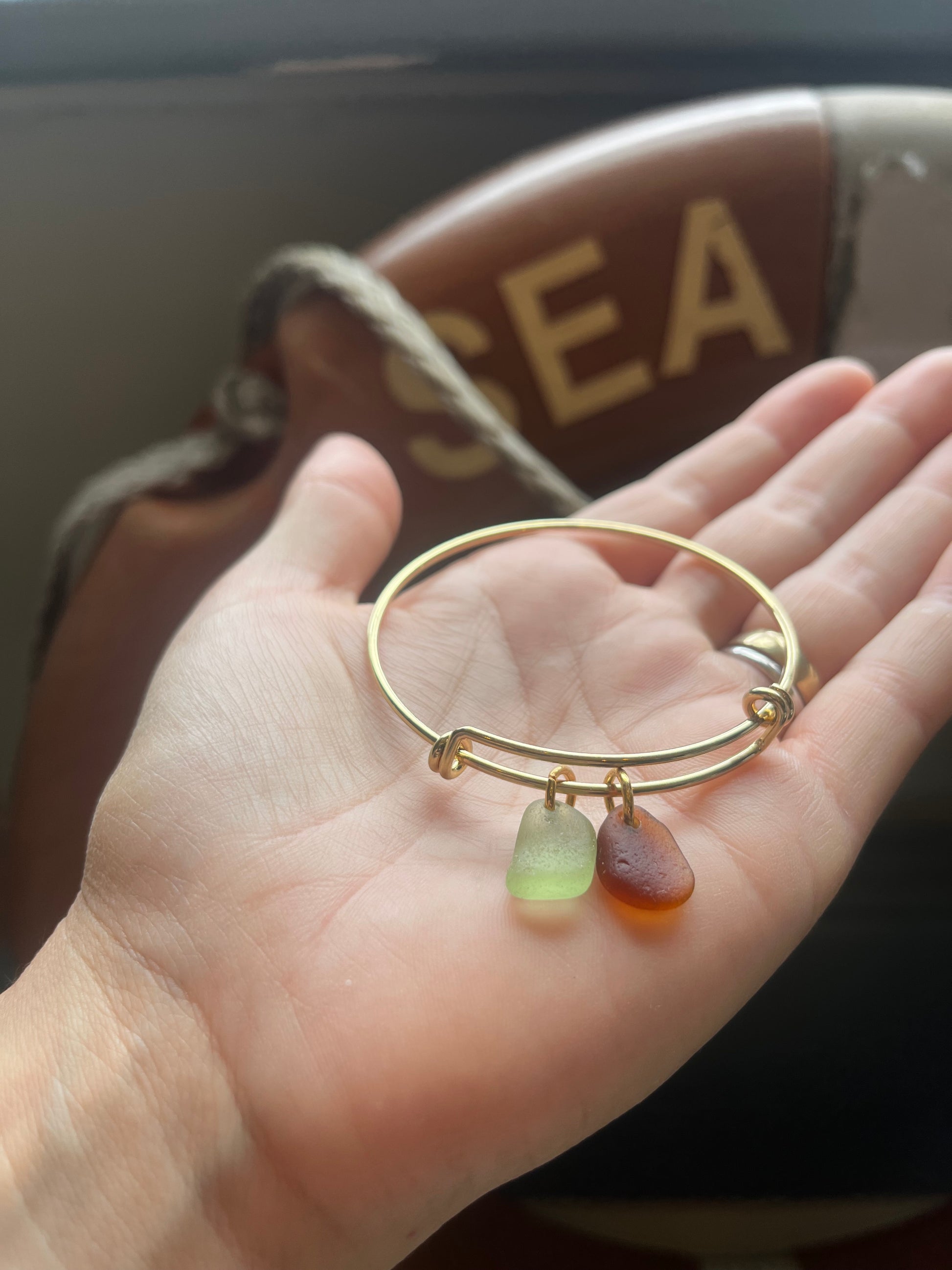 Whitby Sea Glass charms on Gold-Plated Bangle (mix)