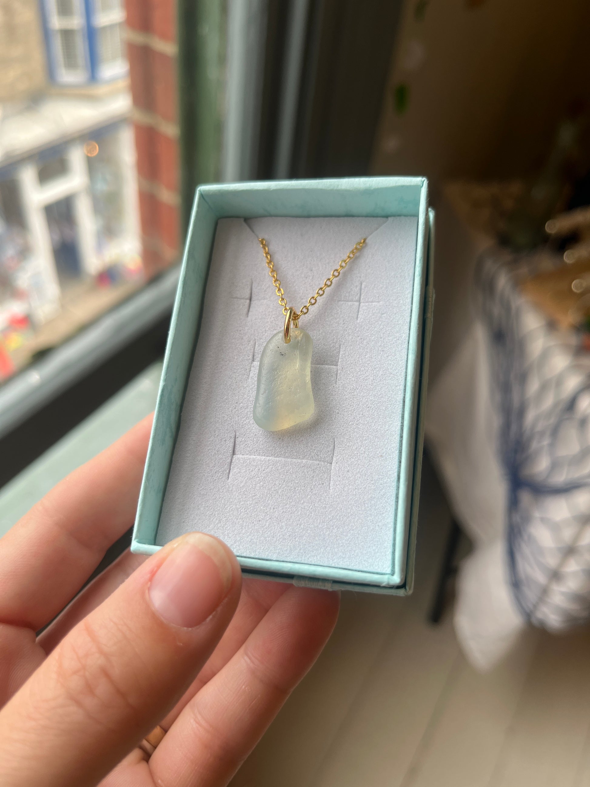 Whitby Sea Glass Pendant on Gold Plated Chain (Opalescent)