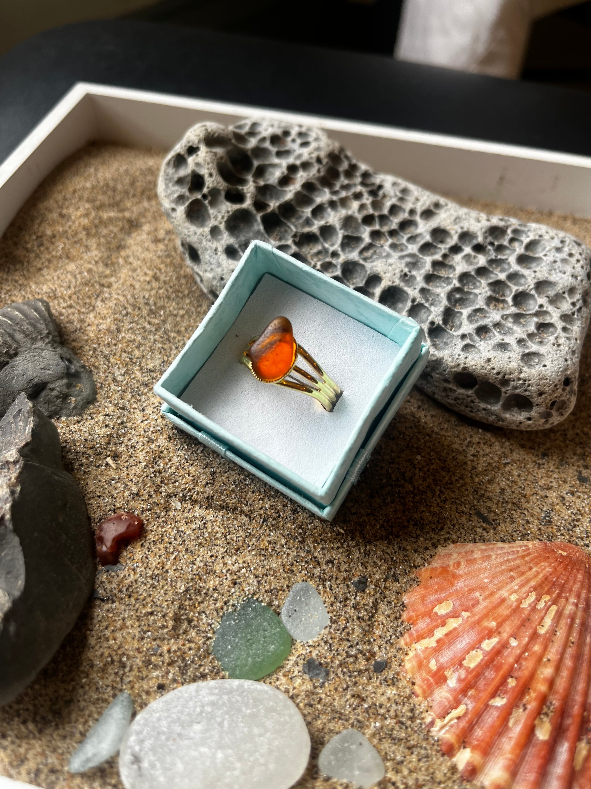 Whitby Sea Glass Gold-Plated Adjustable Ring