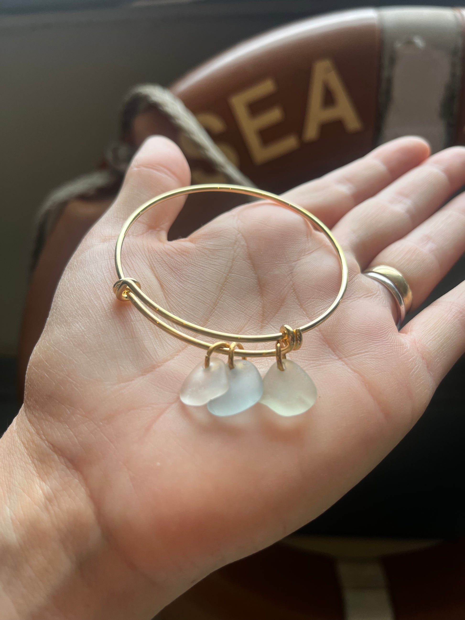 Whitby Sea Glass charms on Gold-Plated Bangle (mix)