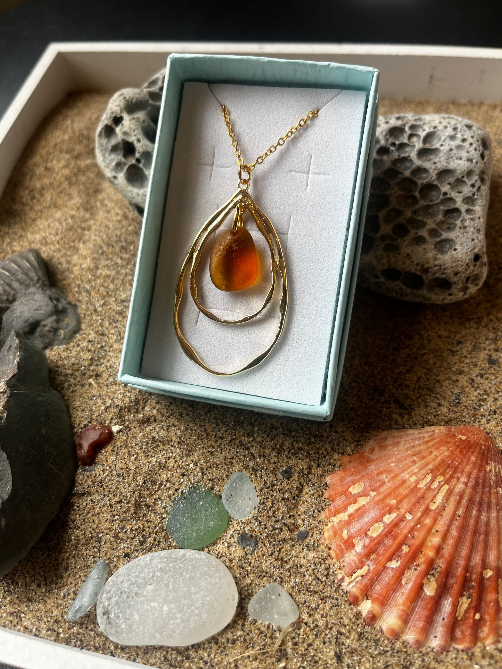 Whitby Sea Glass pendant Gold-Plated (Brown)