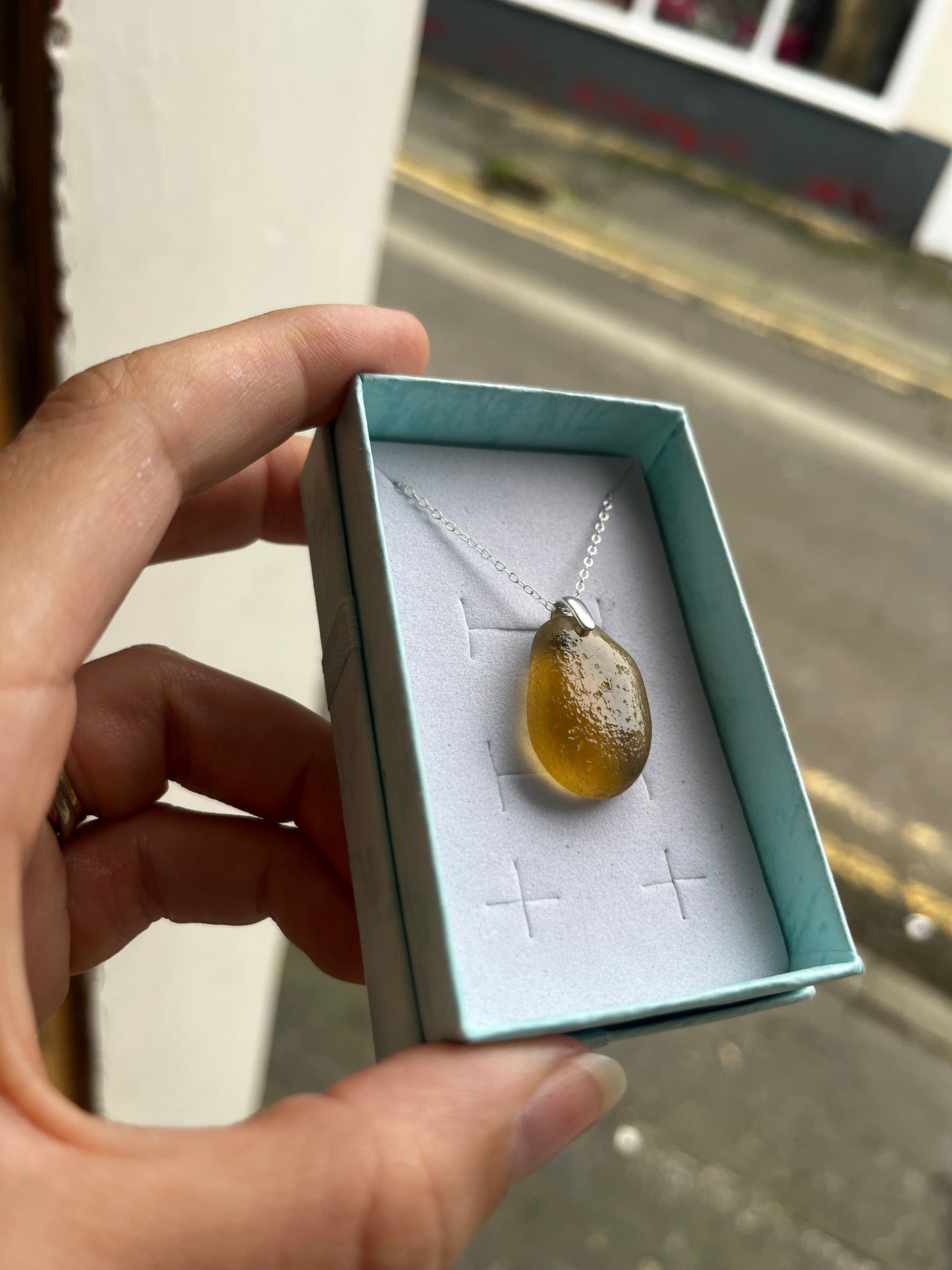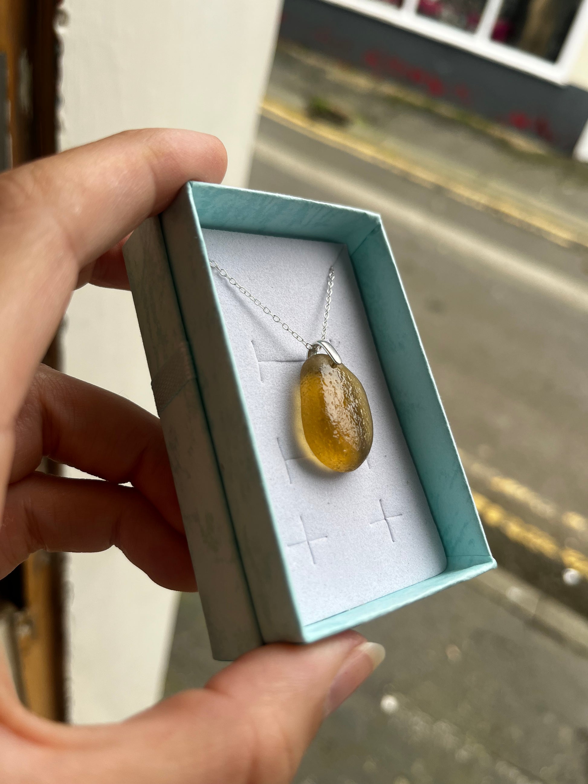 Whitby Sea Glass Pendant on Silver Chain (Honey Yellow)