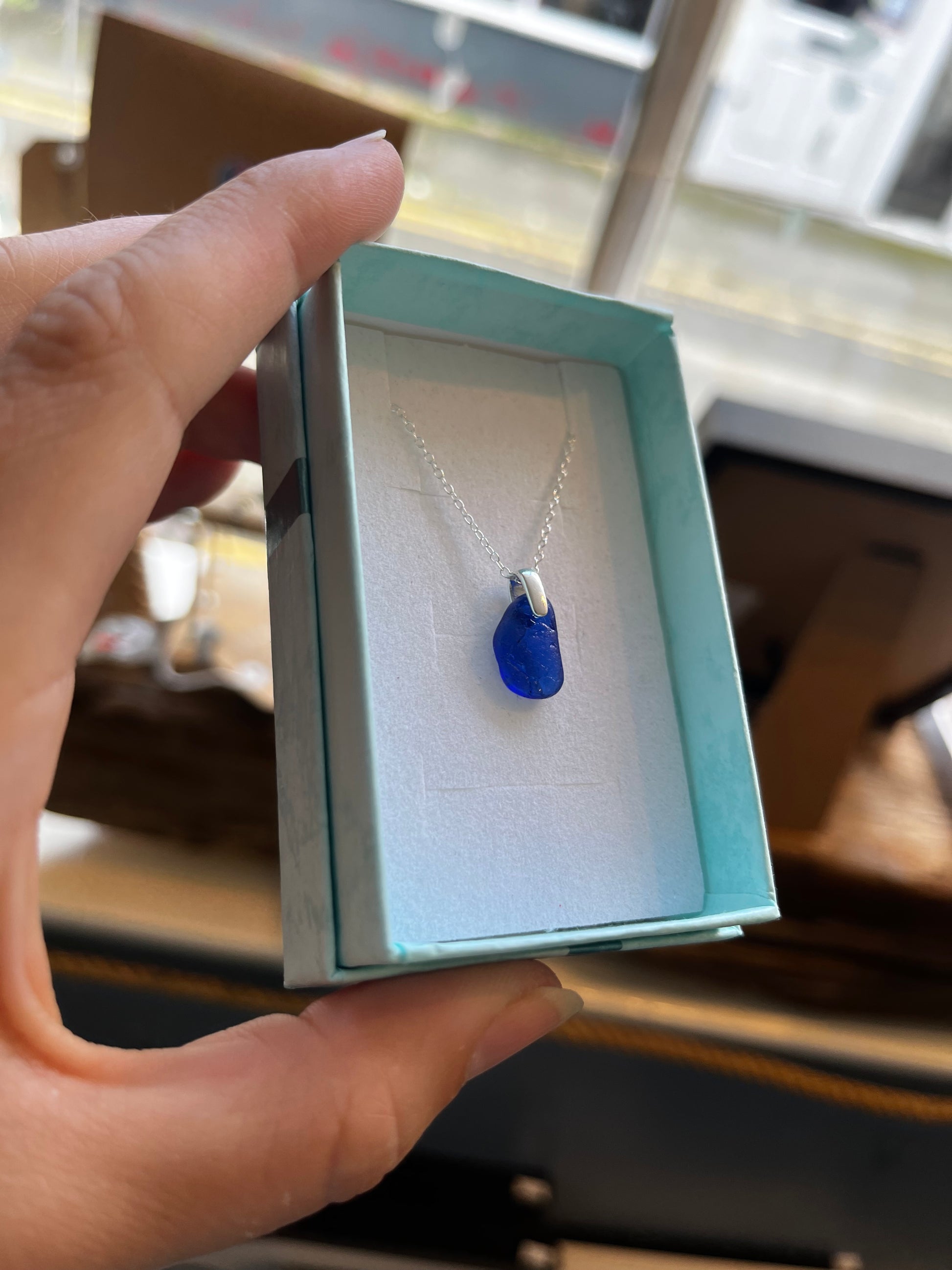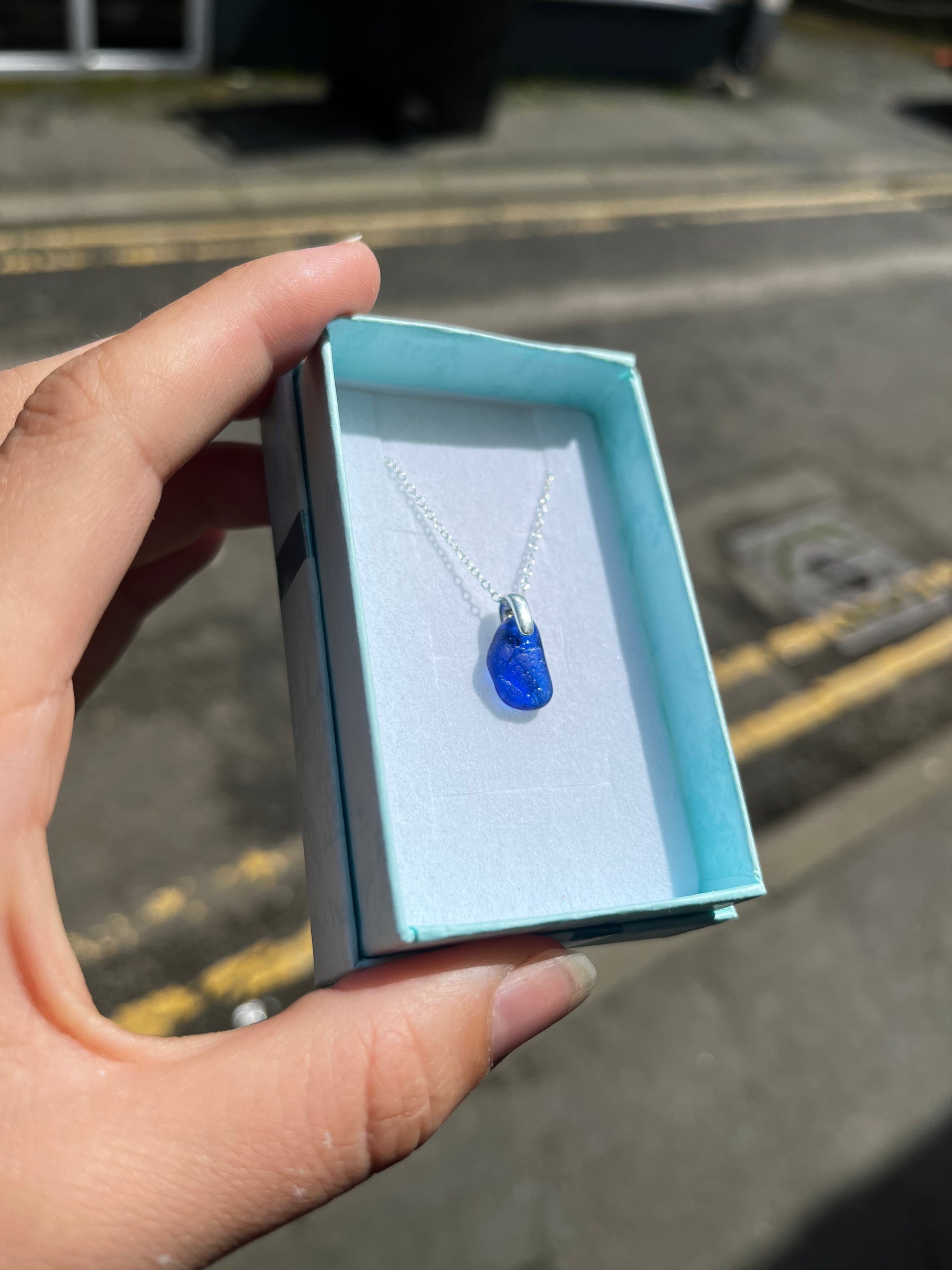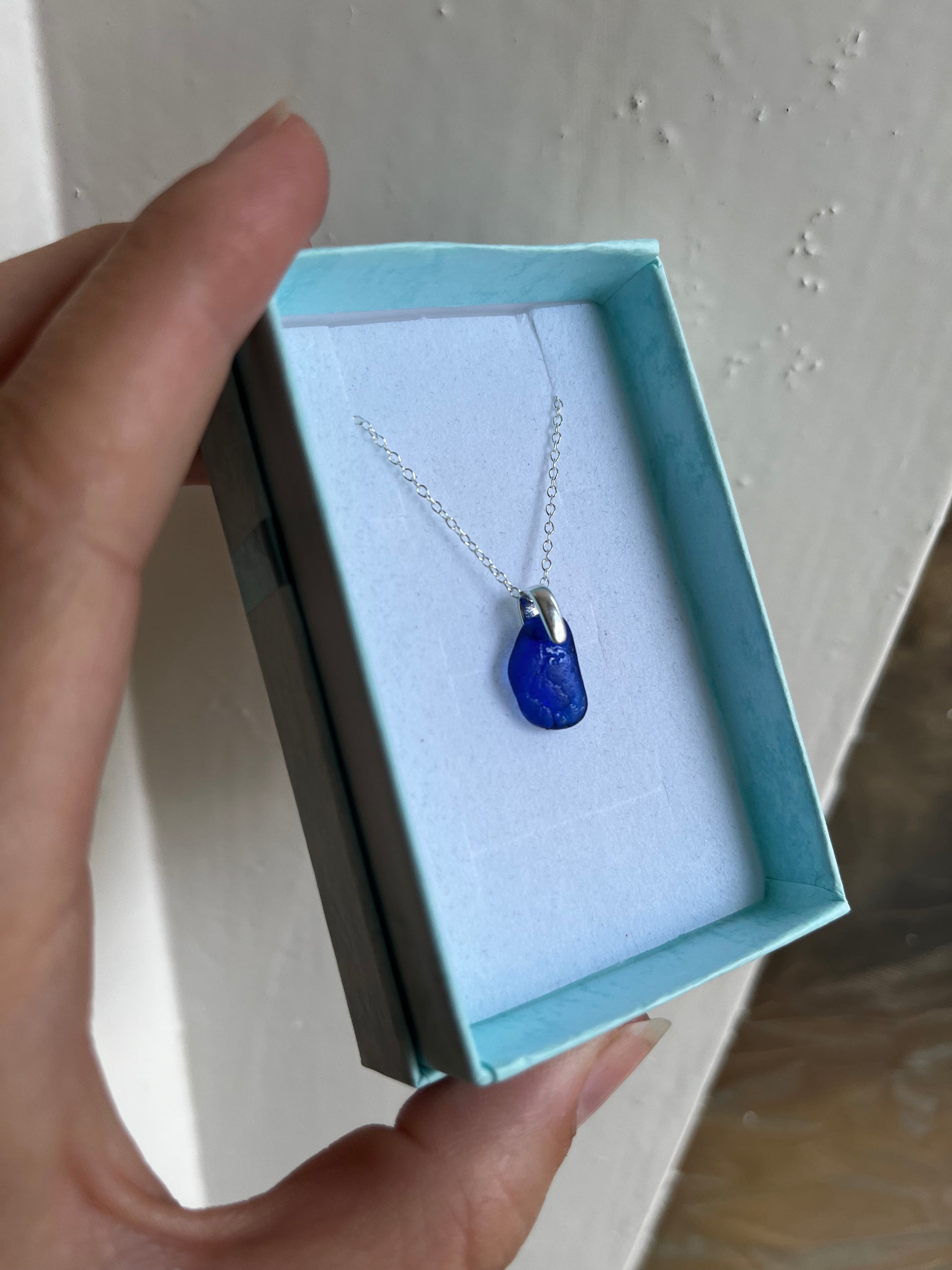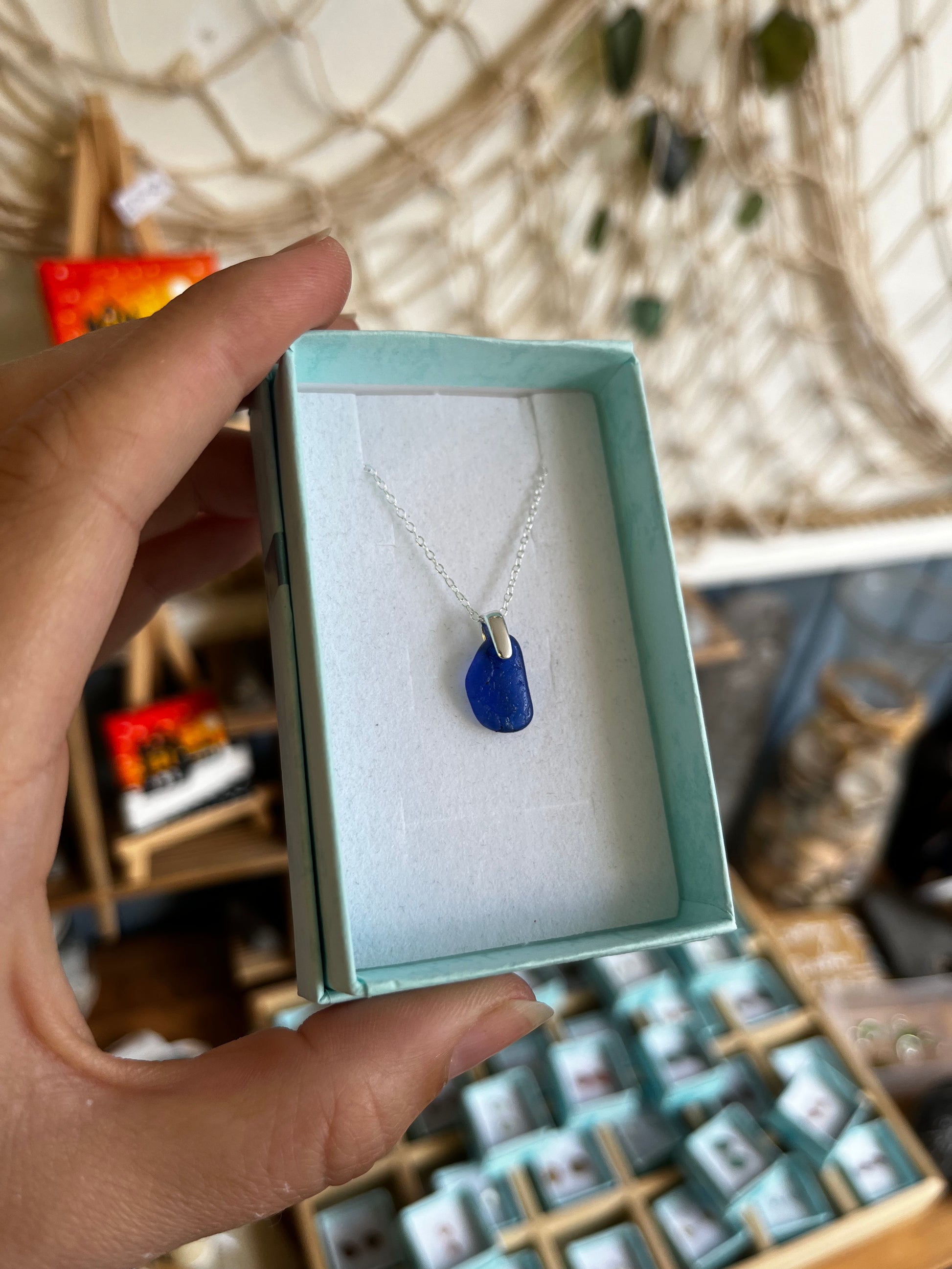Whitby Sea Glass Pendant on Silver (Rare Poison Blue)