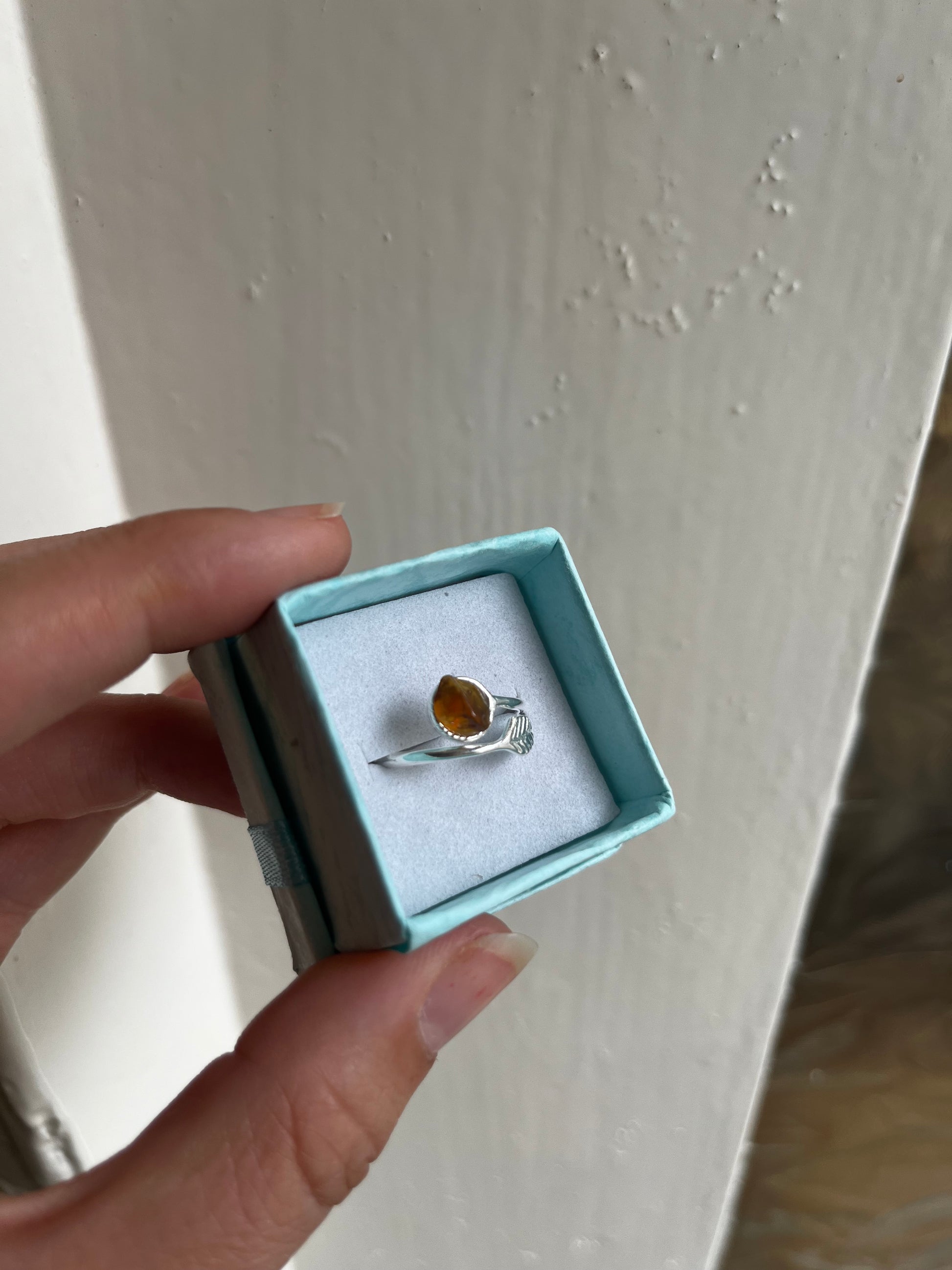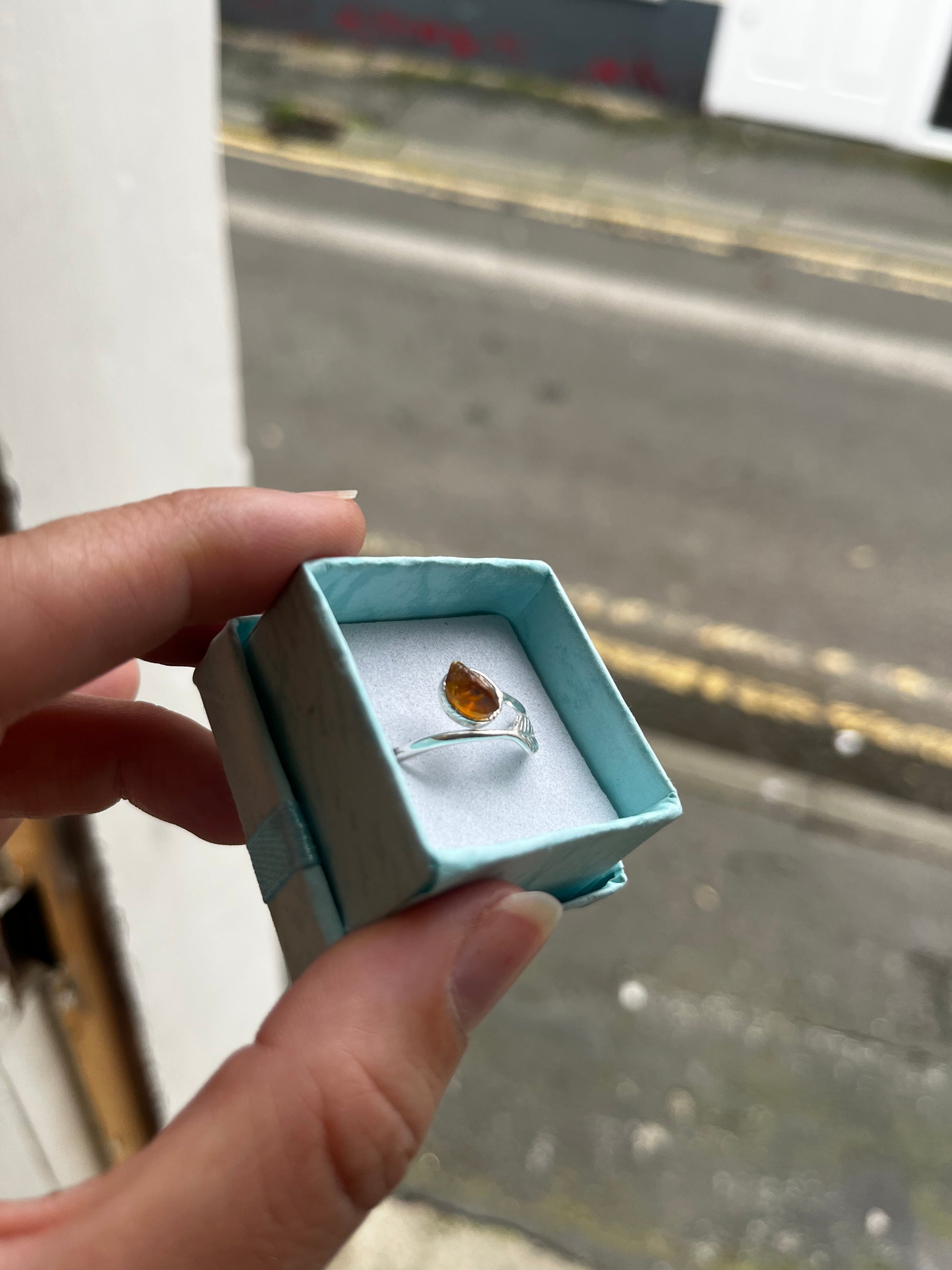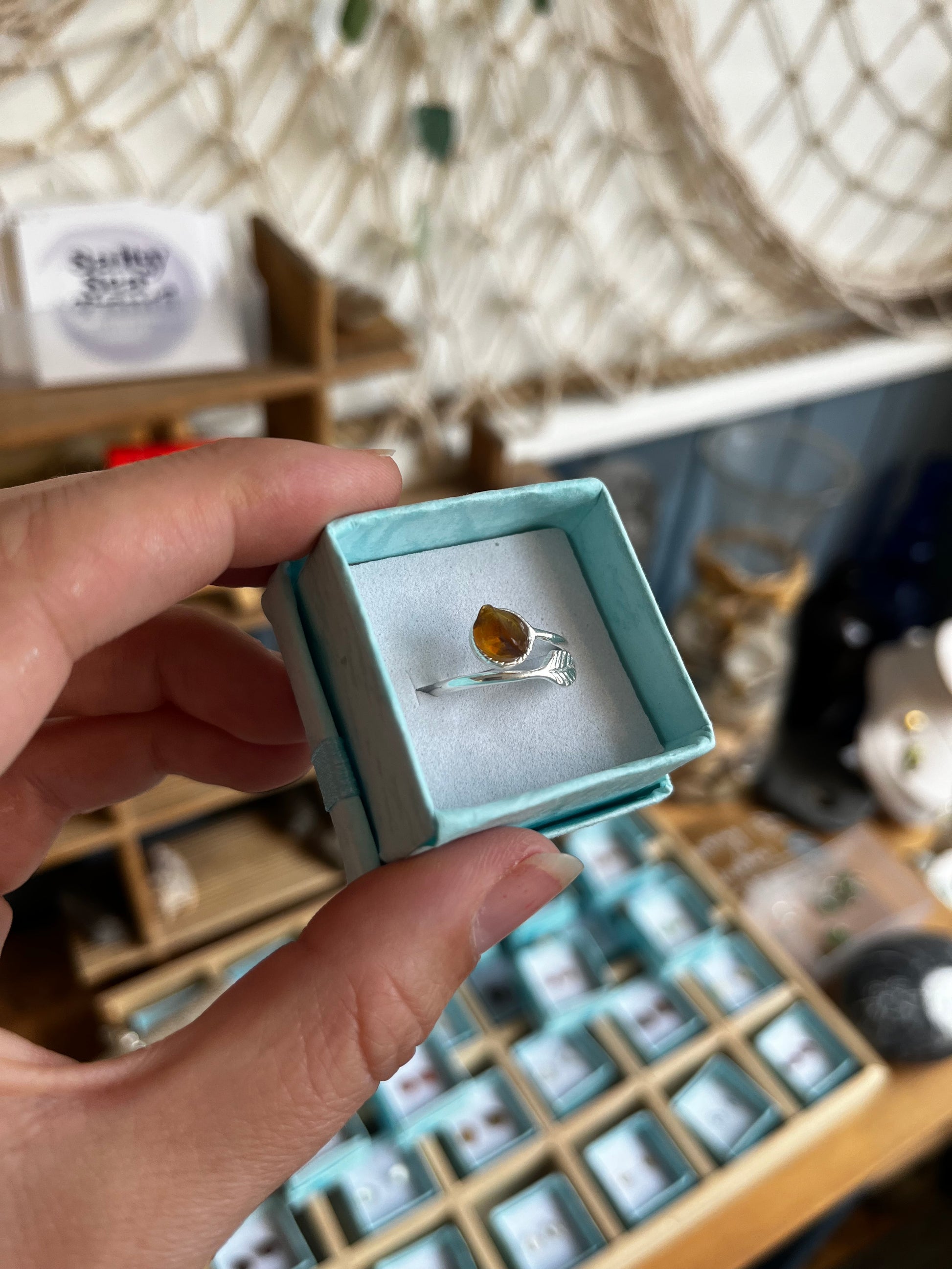 Handpicked Whitby sea glass; in a solid silver, adjustable ring (feather/leaf design)