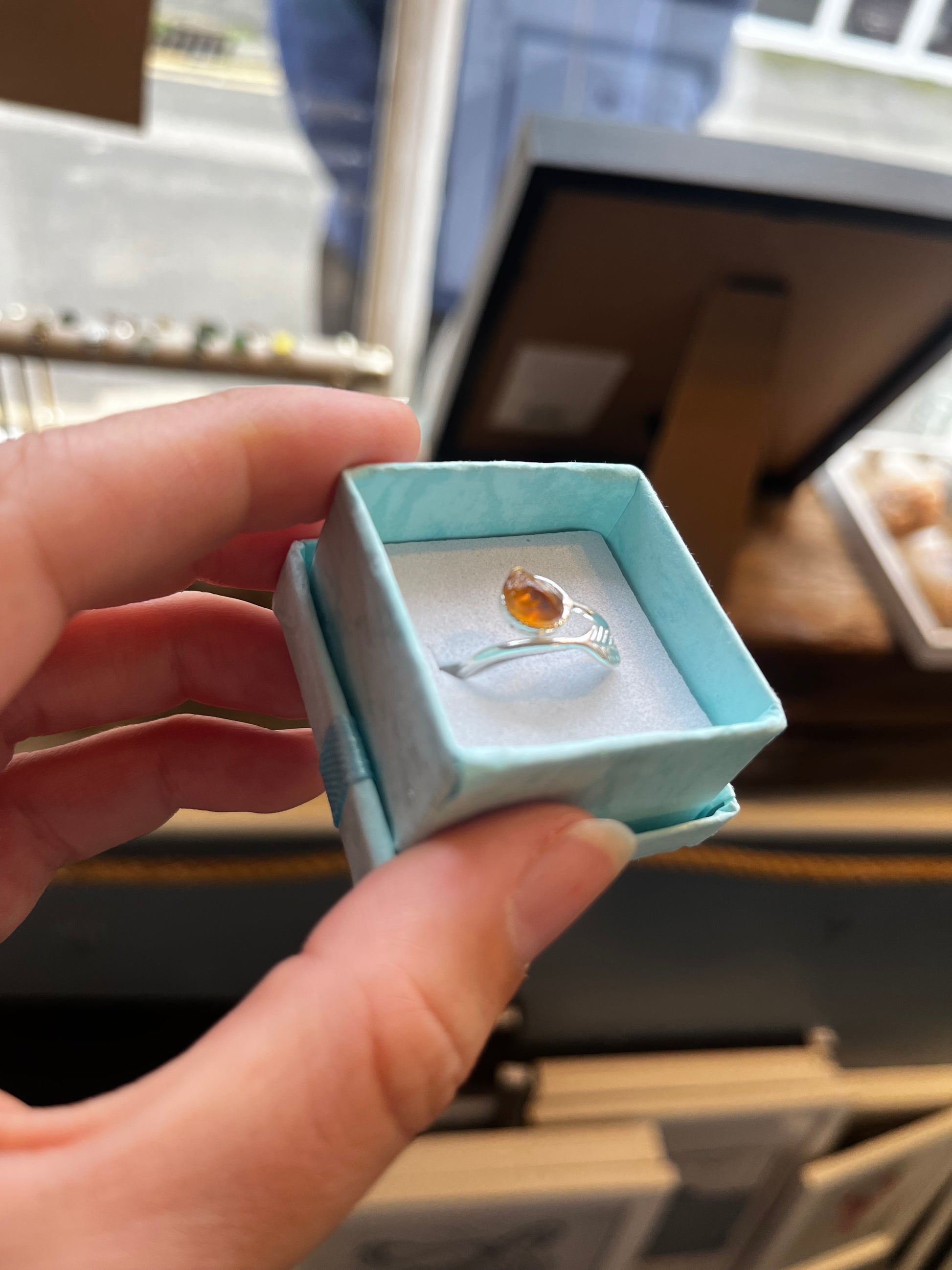 Whitby Sea Glass Silver Adjustable Ring (Ginger/Brown)